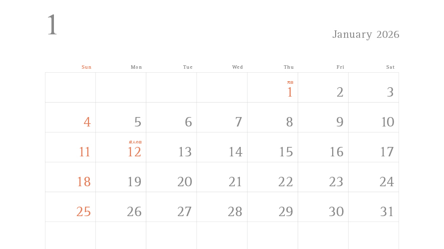 2026年版のシンプルカレンダー(横型)です。 部屋の雰囲気を邪魔することのないシンプルなデザインです。オシャレでシンプルなカレンダーを探しているけどなかなか見つからない方はこちらをぜひご活用ください。 A3サイズ・横型で作成していますので、紙にプリントしてご使用ください(A4など他のサイズに縮小も可能です)。→無料ダウンロードはこちら(pdfファイル・約430KB) 壁掛けカレンダーとして使用い […]